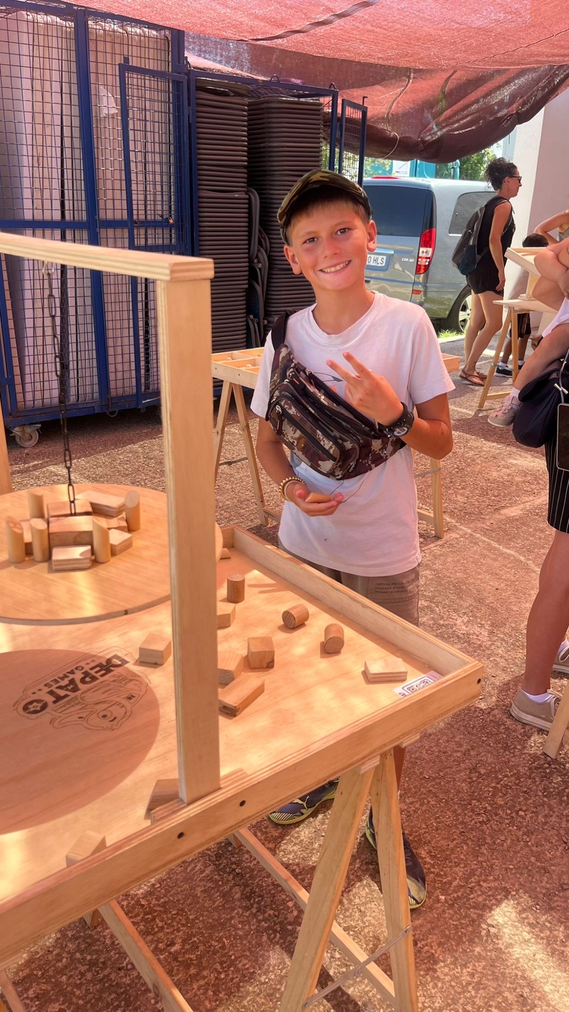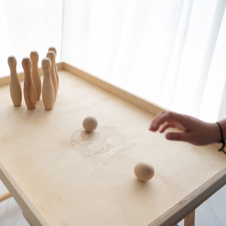 Lanza la bola y derriba el mayor número de bolos. Un clásico de siempre en formato de madera gigante que gusta a todas las edades.